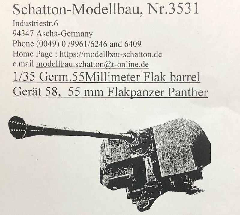 Passend zum brandaktuellen Plastikbausatz der 5,5cm Flak 58 von Customscale der unter dem neuen Label 16.02 angeboten wird oder dem Flakpanzer Panther, gibt es nun ein passendes Metallrohr von Schatton Modellbau. Der Bausatz der 5,5cm Flak 58 enthält zwar neben einem Plastikrohr bereits ein Metallrohr, jedoch ist die Mündungsbremse aus zwei geätzten Metallteilen selbst anzufertigen und mit dem Rohr zu verbinden. Für den erfahrenen Modellbauer ist das sicherlich keine unlösbare Herausforderung bedarf aber dennoch Geduld und Fingerspitzengefühl.