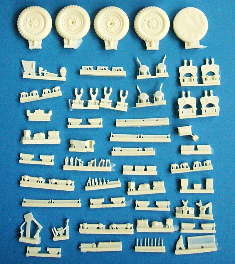 Im Update Set sind etwas mehr als 90 Einzelteile enthalten, die in cremefarbenen Resin gehalten sind. Die Qualität ist hervorragend und in Anbetracht der teilweise nur wenige Millimeter grossen Teilchen mit vergleichsweise wenig Versäuberungsaktivitäten verbunden (Entfernen von etwas Resinhaut).