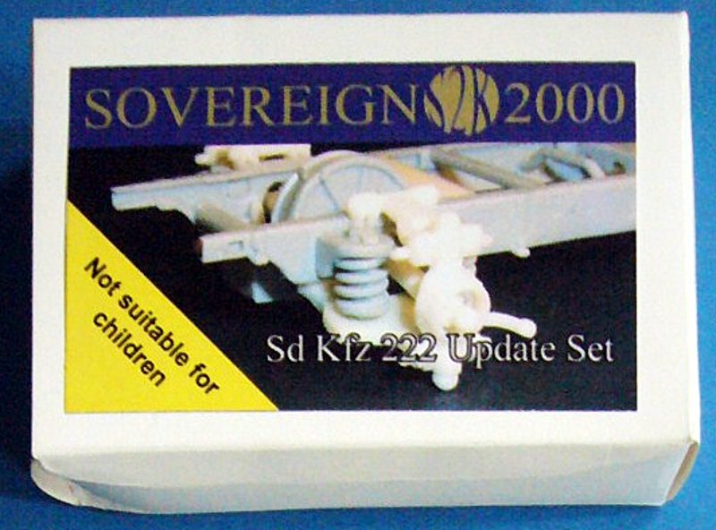 Bausatz: Die bekannte englische Firma Sovereign bietet nun unter dem Label S2K ein Resin Update Set für das deutsche SdKfz 222 an. Leider konnte ich dem Bauplan nicht entnehmen, ob die Teile für den Tamiya oder HobbyBoss Bausatz gedacht sind oder sogar für beide Bausätze passen.