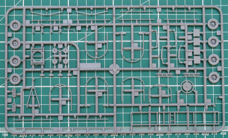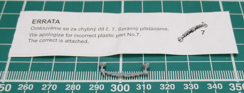 Es gibt hier ein Korrekturteil für das Teil 7. Das ist ein Federpaket und wird gleich im zweiten Bauabschnitt benötigt. In diesem wird das komplette sehr gut detaillierte Fahrgestell des Anhängers zusammengebaut. Ich persönlich finde die Reifen samt Felgen schön detailliert.