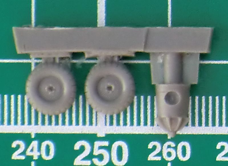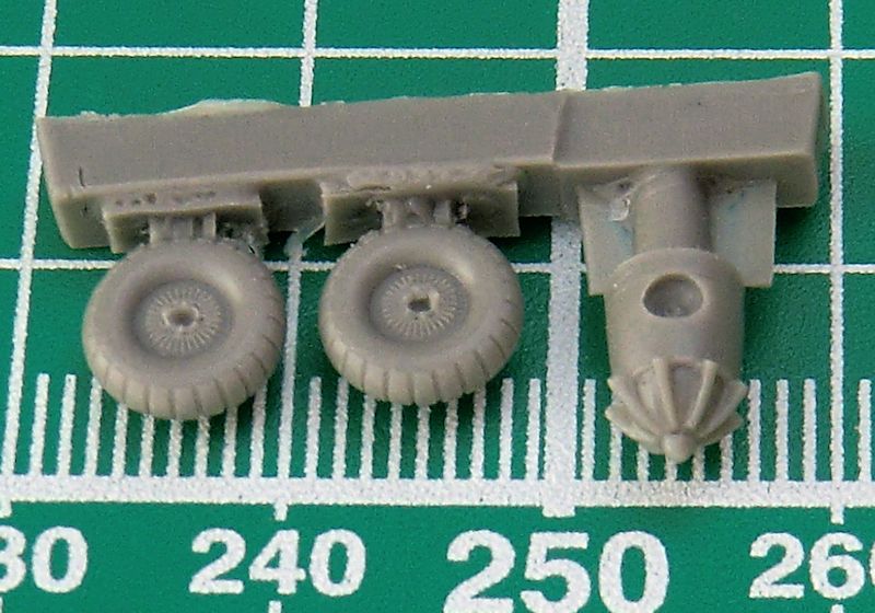 Seitenruder und Höhenleitwerk bestehen aus jeweils einem Stück. Dadurch gibt es dort scharfe Hinterkanten. Die Tragfläche wird aus acht Teilen zusammengesetzt. Dadurch sind die Fahrwerksschächte auch detailliert. Für das Fahrwerk selbst gibt es die Scheren aus Metall. Aus Resin sind die zwei Hauptfahrwerksräder und der Verstellspinner.