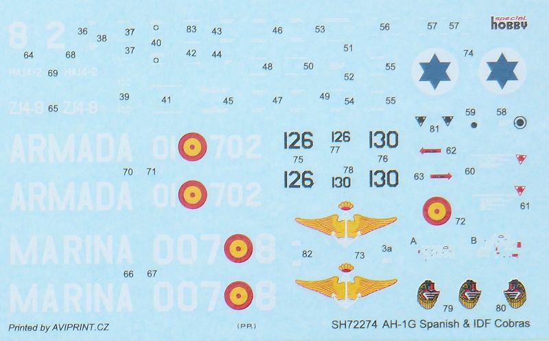 Bausatz: Seit einigen Tagen sind zwei Bausätze der Bell AH-1G Huey Cobra in 1/72 von special hobby (MPM-Gruppe) in der Auslieferung. Ich beschäftige mit hier mit dem Kit der israelischen und spanischen AH-1G zum Vorbild hat. Dieser wurde mittels moderner Technologien erstellt und besitzt das Niveau der Großen auf dem Markt. Er ersetzt die bekannten Bausätze von Monogram, Matchbox und Plastyk sowie den "Schnellschuss" von AZmodel.