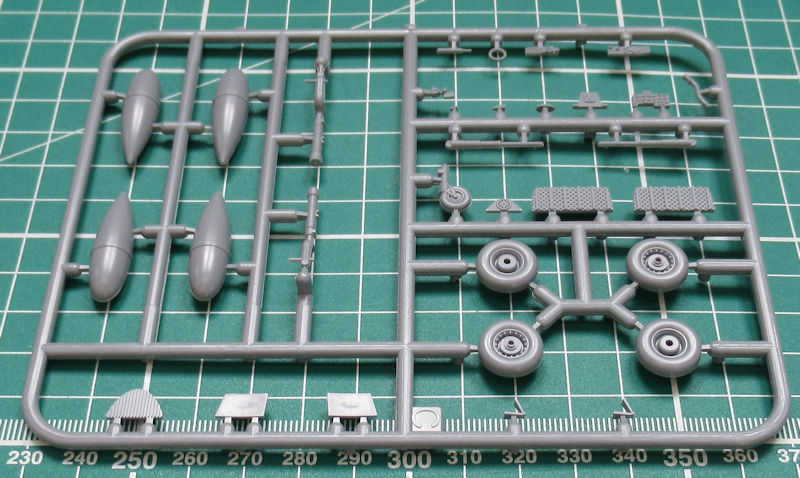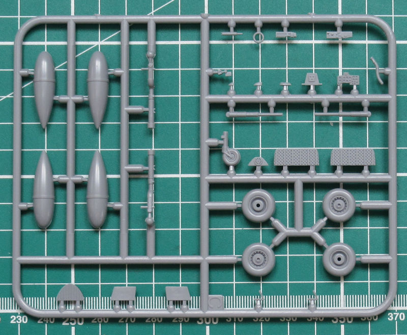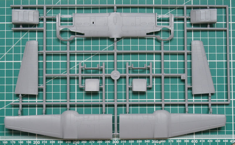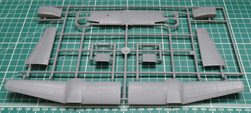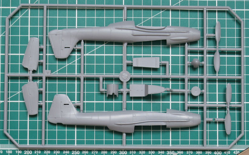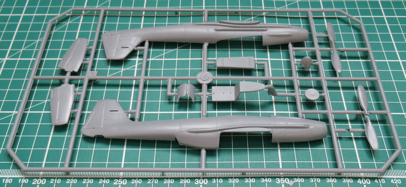 Die beiden einzigen Resinteile sind für die beiden Fahrwerksschächte. Beim Zusammenbau der beiden großen Flächenkühler muss man ein wenig ausrichten. Es fehlen hier Locations. Immerhin haben die Höhenruder scharfe Hinterkanten. Die Fahrwerksteile sind neu gestaltet und sehen gut aus. Die vierblättrige Luftschraube entsteht aus zwei Teilen. Leider ist die Kanzel nach wie vor aus einem Teil vorhanden. Wenn diese geöffnet sein soll, dann muss man die Säge ansetzen.