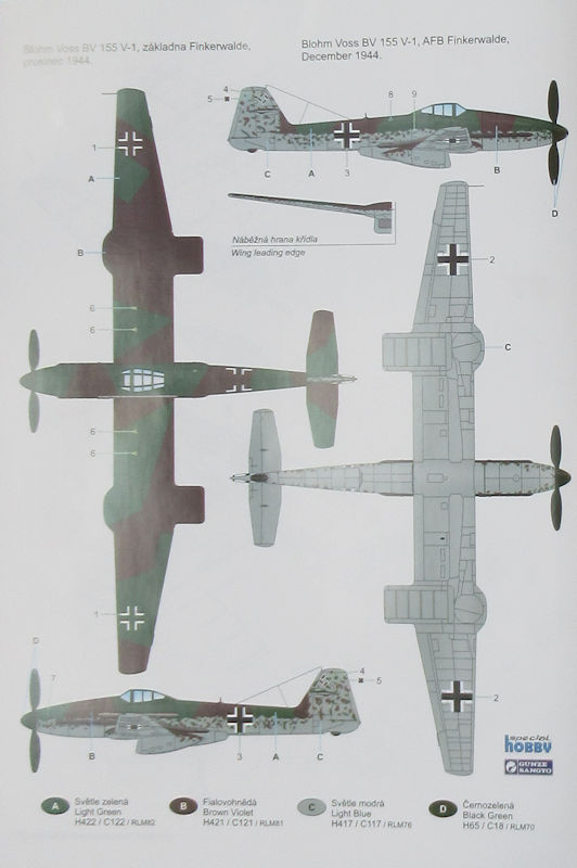 Dieses einsitzige Jagdflugzeug hatte eine extreme Spannweite von 21 Metern und wurde von einem aufgeladenen DB 603U angetrieben. Am 08. Februar 1945 flog die erste Bv 155V1 mit der Werknummer 360051. Es gab natürlich einige Probleme. Nach mehreren Testflügen überlebte der einzige fertiggestellte Prototyp den WK II. Bei einem Erprobungsflug mit einem britischen Piloten ging er als Totalschaden verloren. Die V2 und die V3 wurden nicht fertiggestellt. Die Erstere ging an Großbritannien und wurde in Farnborough gezeigt. Dem dritten Prototypen erging es besser. Er wurde zwar auch nie in die Luft gebracht aber die Teile davon sind noch in den USA im Depot erhalten. Von der gänzlich anders konstruierten C-Reihe flog kein Prototyp oder wurde annähernd bebaut. Diese besaß einen großen Kinnkühler im Bug.
