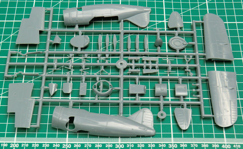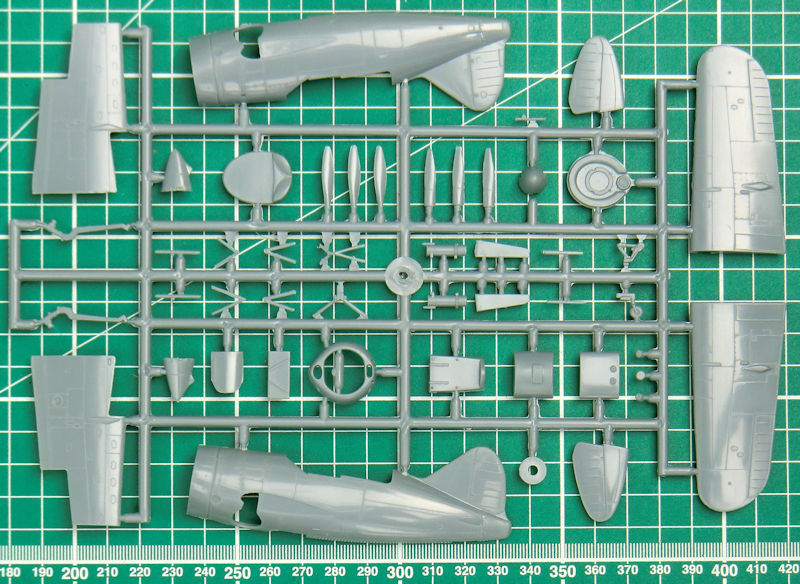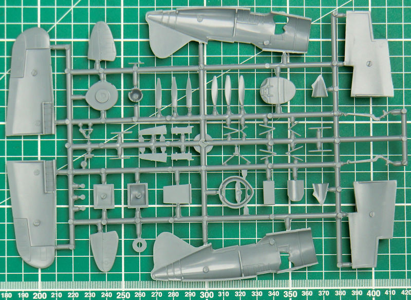 Am Heck muss die Säge angesetzt werden. Diese Variante hatte ein längeres Heck und daher muss dieses angeklebt werden. Das Fahrwerk ist filigran und einige Teile müssen schon vor dem Zusammenfügen des Rumpfes eingebaut werden. Die Quer- und Höhenruder besitzen scharfe Hinterkanten. Aus sechs Teilen entsteht die Luftschraube. Die Cockpitverglasung kann auch offen dargestellt werden.