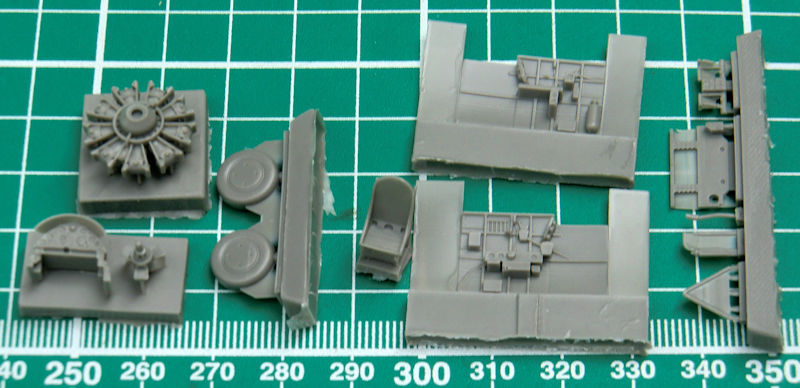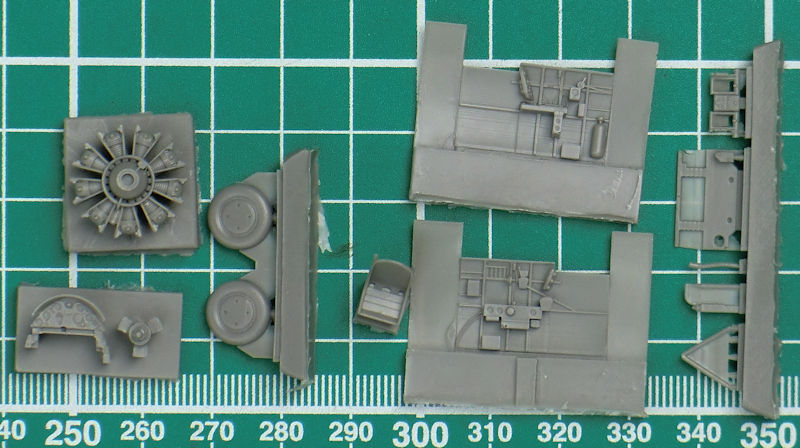 Der Bau beginnt mit dem Cockpit und dem Motor. Im Cockpit werden sehr schön gemachte Resinteile verbaut. Die Instrumente werden mittels Decals dargestellt. Leider hat special hobby noch immer keine Sitzgurte beigefügt. So muss man bei eduard die neuen Steel-Gurte nutzen.