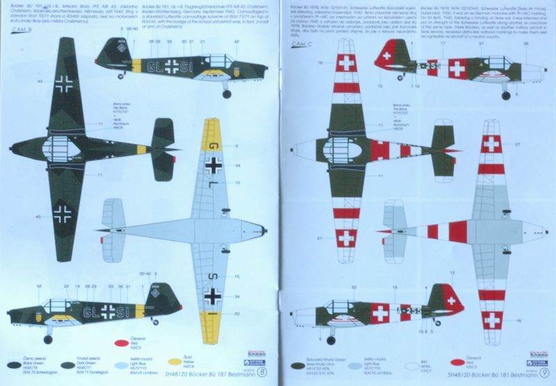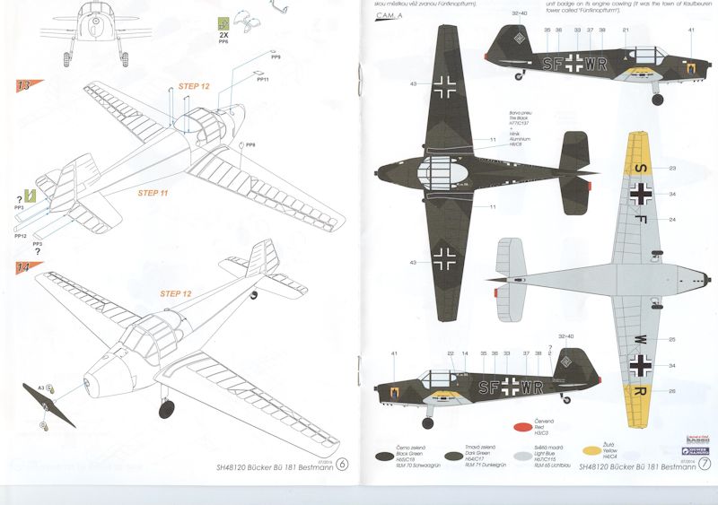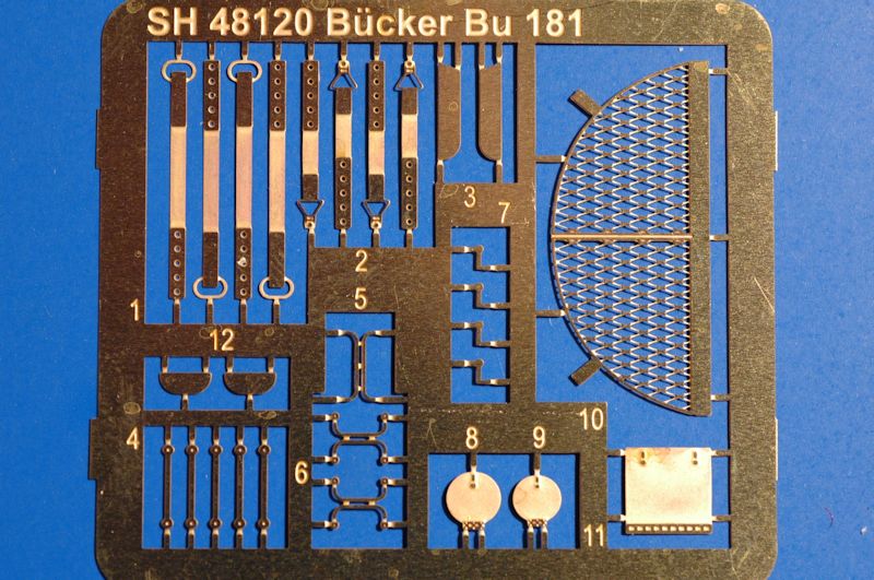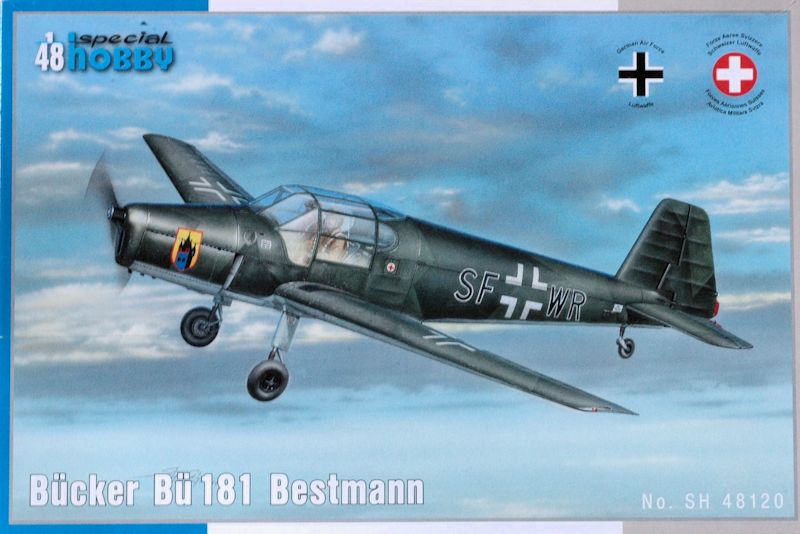 Bausatz: Parallel zum Konkurrenzmodell des neuen Herstellers Stransky bescherte uns der ebenfalls tschechische Hersteller Special Hobby eine weitere Bü 181. In einem stabilen Stülpkarton befinden sich drei Spritzlinge in grauem Plastik, ein Spritzrahmen mit Klarsichtteilen, ein kleiner Gussläufer mit Resinteilen, eine Ätzplatine, die von Cartograf gedruckten Decals und eine geheftete farbige Bauanleitung auf Hochglanzpapier im A5 Format.
