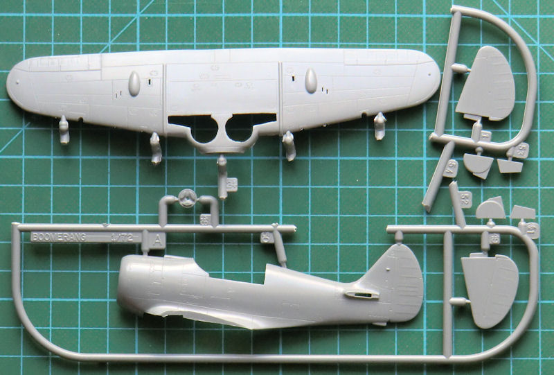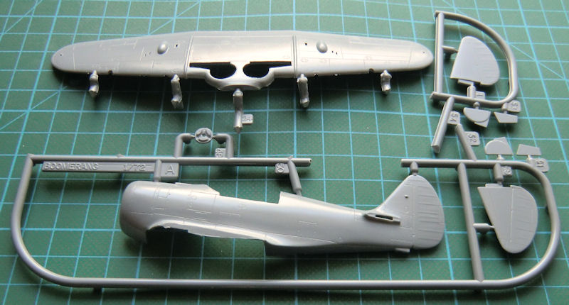 Bausatz: Die Boomerang gab es in 1/72 bisher von Airfix und als Kleinserienbausatz von Tasman-Models. Nun erschien vor einiger Zeit bei special hobby dieses WK II-Flugzeug als typischer Short-Run-Kit. In der attraktiven aber unpraktischen Schüttbox befinden sich gut verpackt 53 hellgraue Spritzgussteile, ein Klarsichtrahmen mit vier Teilen, ein Decalbogen, die übersichtliche Bauanleitung. Schnell erkennt man die typischen Short-Run-Teile. Hier gibt es feine Strukturen und eine stimmige Kontur. Der Teufel steckt leider beim Zusammenbau im Detail.