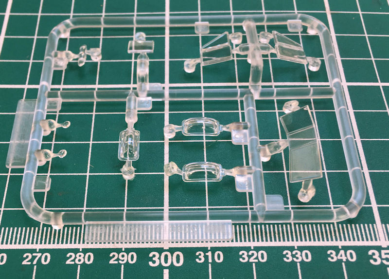 Der Bau beginnt mit der Zelle. Hier werden zuerst die runden Fenster von innen eingeklebt. Das Instrumentenbrett hat ein paar Strukturen und wird mittels Decal nachdetailliert. Ansonsten gibt es ein schönes Cockpit. Hier muss man nur noch die Sitzgurte ergänzen. Weiter hinten ist es allerdings leer. Die hintere Tür ist allerdings einzeln vorhanden und könnte auch in einer geöffneten Position angeklebt werden.