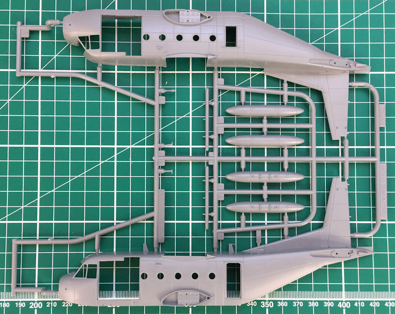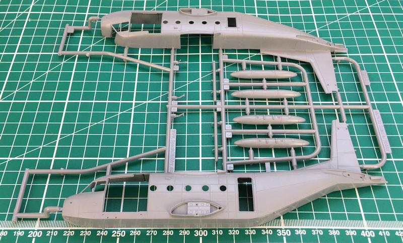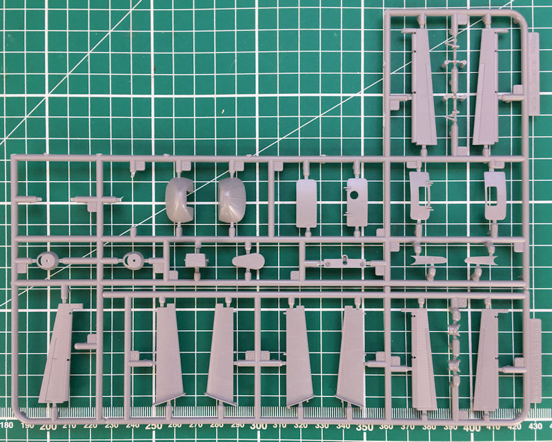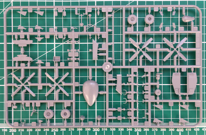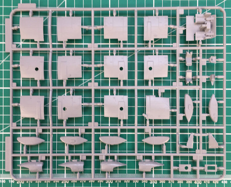 In dem attraktiven praktischen Stülpkarton befinden gut verpackt fünf graue Spritzlinge mit 146 Teilen, zwei Klarsichtrahmen mit 40, 10 Resinteile, ein kleiner Fotoätzteilbogen, zwei Decalbögen und die mehrfarbige Bau- und Bemalungsanleitung. Die Teile entsprechen dem heutigen Stand der Technik bei special hobby. Es gibt gut gemachte Kleinteile und feine versenkte Strukturen. Es gibt auch einige Alternativteile und daher sind auch weitere Varianten zu erwarten. Diese wandern dann in die berühmte Restekiste. So bleiben ca. die Hälfte der Teile zum Bau übrig.