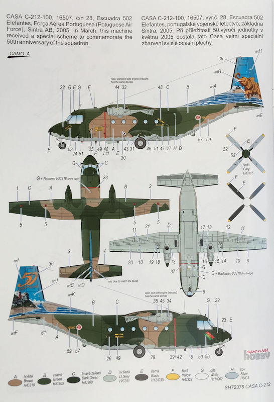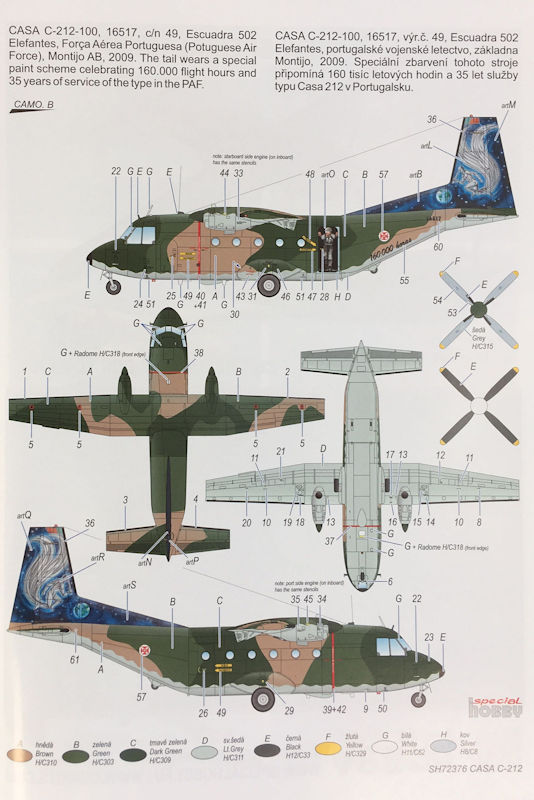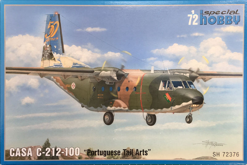 Bausatz: Die CASA C-212 gab es seit einigen Jahren als extreme Kleinserienbausätze von diversen Herstellern. 2017 brachte special hobby den ersten Spritzgussbausatz der C-212-100 auf dem Markt. Kürzlich erschien eine Decalvariante mit einer Sondermarkierung der Portugiesischen Luftwaffe.