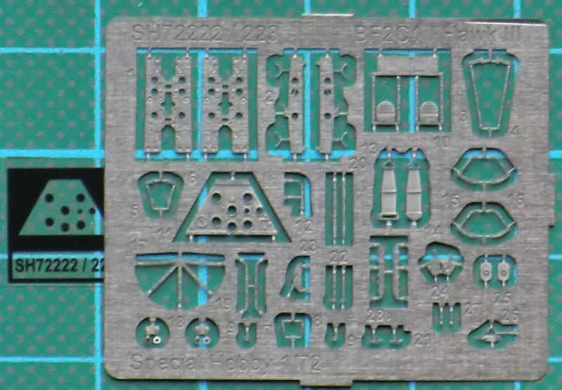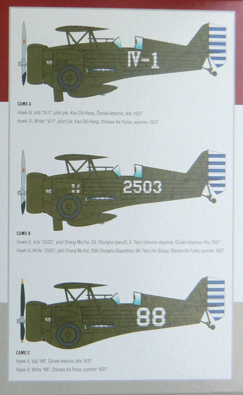 Bausatz: Die Curtiss Hawk III erschien schon vor einigen Jahren unter dem Label MPM. Jetzt hat special hobby in 1/72 einen neu erstellten Bausatz herausgebracht. In der attraktiven Schüttbox befinden sich gut verpackt zwei dunkelgraue Spritzlinge mit 46 Teilen, zwei Klarsichtteile, drei Resinteile, ein Fotoätzteilbogen, ein Fotofilm, ein Decalbogen und die Bauanleitung. Auf der Rückseite der Schüttbox befinden sich die mehrfarbigen Bemalungsanleitungen.