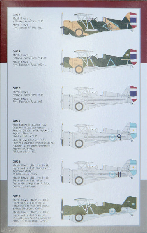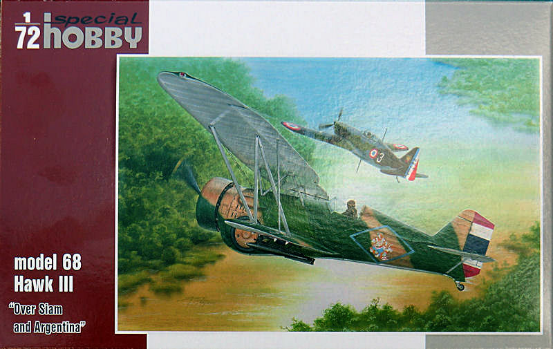 Bausatz: Die Curtiss Hawk III erschien Ende letzten Jahres neu gestaltet mit chinesichen Markierungen. Jetzt hat special hobby in 1/72 einen weiteren Bausatz herausgebracht. In der attraktiven Schüttbox befinden sich gut verpackt zwei dunkelgraue Spritzlinge mit 46 Teilen, zwei Klarsichtteile, drei Resinteile, ein Fotoätzteilbogen, ein Fotofilm, ein Decalbogen und die Bauanleitung. Auf der Rückseite der Schüttbox befinden sich die mehrfarbigen Bemalungsanleitungen.