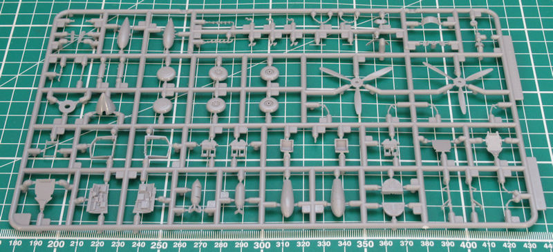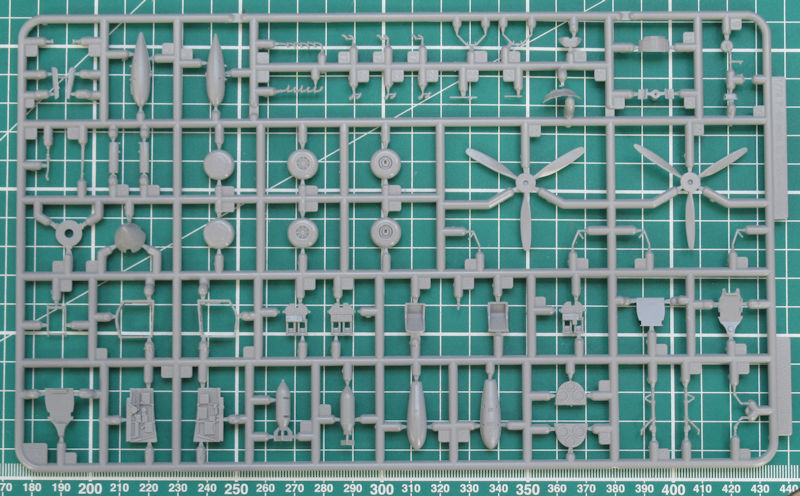 Die Auspuffstutzen werden separat eingeklebt und können zuvor bemalt werden. In den Fahrwerksschächten gibt es schöne Details. Man hat bei special hobby die Querruder an die Tragflächenoberseite anmodelliert. Dadurch habe diese auch scharfe Hinterkanten. Diese findet man auch den Hinterkanten von Seiten- und Querruder. Das Staurohr muss allerdings selbst angefertigt werden. Die Kühlerklappen können alternativ offen oder geschlossen angebaut werden. Für die Luftschraube gibt es ein Alternativteil welches hier nicht benötigt wird. Dafür muss die Drei-Blatt-Luftschraube nur noch auf die Halterung geklebt werden und dann kommt nur noch der Spinner drauf.