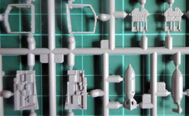 Die hellgrauen Äste sind sauber abgespritzt, ohne Gussgrate und -fehler. Die Kunststoffteile sind mit feinen Gravuren und einigen erhabenen Details versehen.