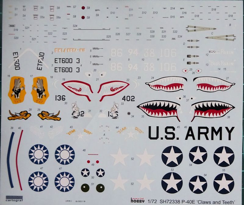 Das Cockpit ist auch ohne Ätzteile gut detailliert, selbst für die Sitzgurte gibt es Abziehbilder. Aufgrund der Auslegung für die unterschiedlichen P-40 Versionen bleiben Teile für die Restekiste übrig. Aber gleichzeitig muss man beim Bau aufpassen das man kein falsches Teil erwischt. Diese kleinen Teile, wie z.B. für das Cockpit, sind so angelegt, dass man sie problemlos gegen die dafür ausgelegten CMK-Resinteile tauschen kann.