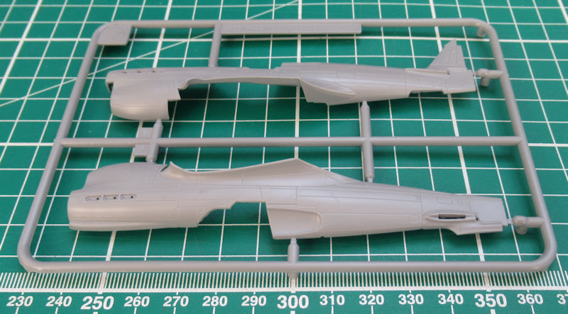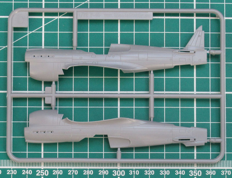 Ein paar Teile sind für andere Varianten bestimmt und wandern in die Restekiste. Bei diesem Bausatz tragen die Spritzgussrahmen unterschiedliche Handschriften. Es gibt feine versenkte Strukturen bei den Großbauteilen und die Kleinteile sehen sehr gut aus. Die Seitenkonsolen im Cockpit sind für eine geschlossene Haube durchaus in Ordnung. Das Instrumentenbrett hat ein paar Strukturen und wird mit einem Decal versehen. Der Sitz kann mit Hilfe eines Decals seine Sitzgurte bekommen. Das ist sehr gut! Der Boden des Cockpits bildet eine Einheit mit der Tragflächenoberseite.
