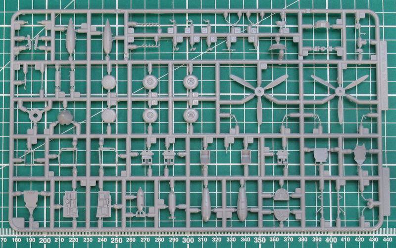 Die Auspuffstutzen werden separat eingeklebt und können zuvor bemalt werden. In den Fahrwerksschächten gibt es schöne Details. Man hat bei special hobby die Querruder an die Tragflächenoberseite anmodelliert. Dadurch habe diese auch scharfe Hinterkanten. Diese findet man auch den Hinterkanten von Seiten- und Querruder. Das Staurohr sieht ordentlich aus. Die Kühlerklappen können alternativ offen oder geschlossen angebaut werden. Für die Luftschraube gibt es ein Alternativteil welches hier nicht benötigt wird. Dafür muss die Drei-Blatt-Luftschraube nur noch auf die Halterung geklebt werden und dann kommt nur noch der Spinner drauf.