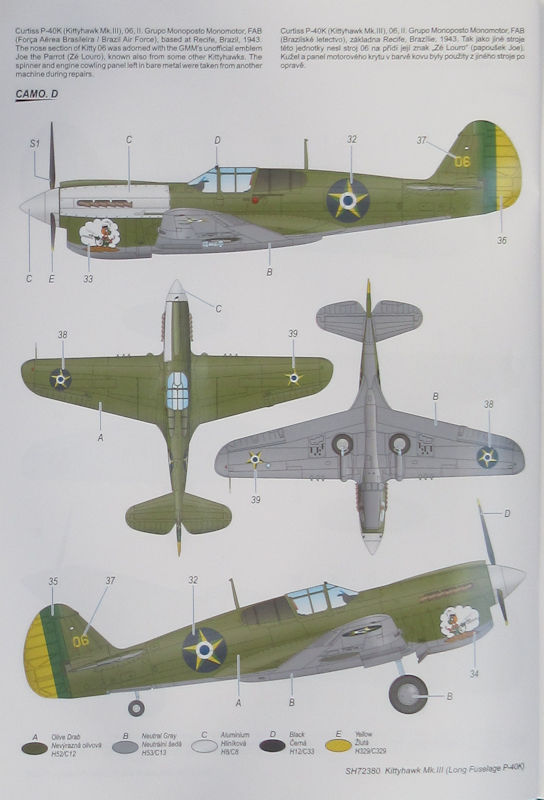 Vorbild: Die Curtiss P-40 entstand aus der für den Export produzierten P-36. Sie wurde erstmals durch Frankreich 1940 für den Export bestellt. Frankreich erhielt nach dem Waffenstillstand im Sommer 1940 keine Waffen mehr aus den USA und so wurde Großbritannien der erste ausländische Nutzer dieses Jägers. Die USAAF hatte schon am 26. April 1939 einen Auftrag von 524 Hawk 81A (P-40CU) bei Curtiss platziert.