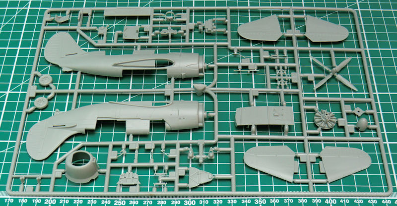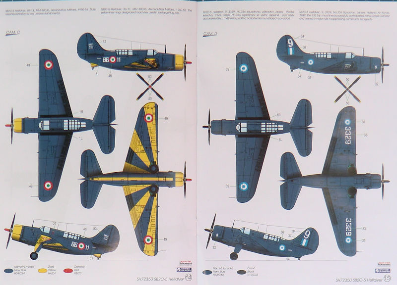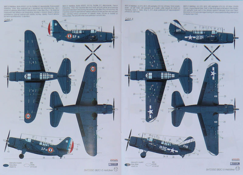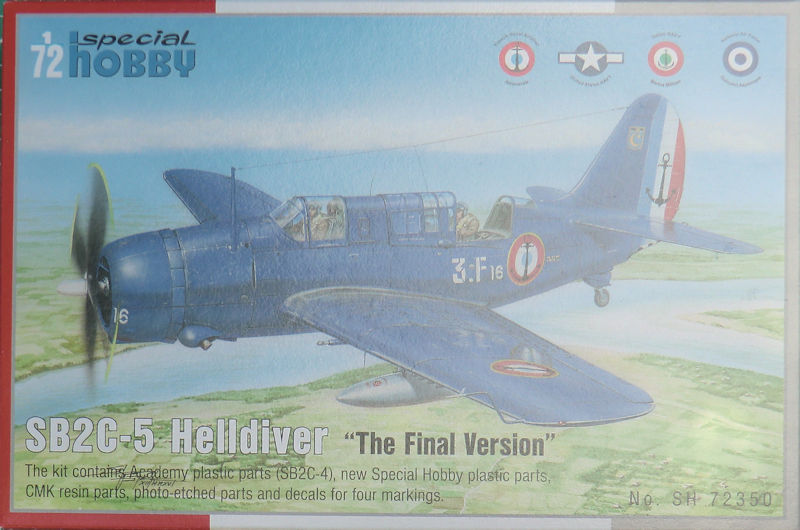 Bausatz: Im Maßstab 1/72 sind die beiden Bausätze von ACADEMY und cyberhobby der Curtiss SB2C das Maß aller Dinge. Jeder Bausatz hat vor oder Nachteile. Das tschechische Unternehmen special hobby ist immer für eine tolle Idee gut! So hat man sich bei ACACEMY in Korea die Spritzgussteile der Crutiss SB2C-3 Helldiver besorgt und mit eigenen Mitteln daraus eine späte SB2C-5 in 1/72 gemacht. In dem attraktiven praktischen Stülpkarton befinden sich gut verpackt zwei graue Spritzlinge von ACADEMY mit 84 Teilen, ein neuer Spritzgussrahmen mit 16 Teilen, zwei Klarsichtrahmen mit neun Teilen, einer kleinen Fotoätzplatine, 37 Resinteile, zwei Decalbögen und die übersichtliche Bau- und Bemalungsanleitung.