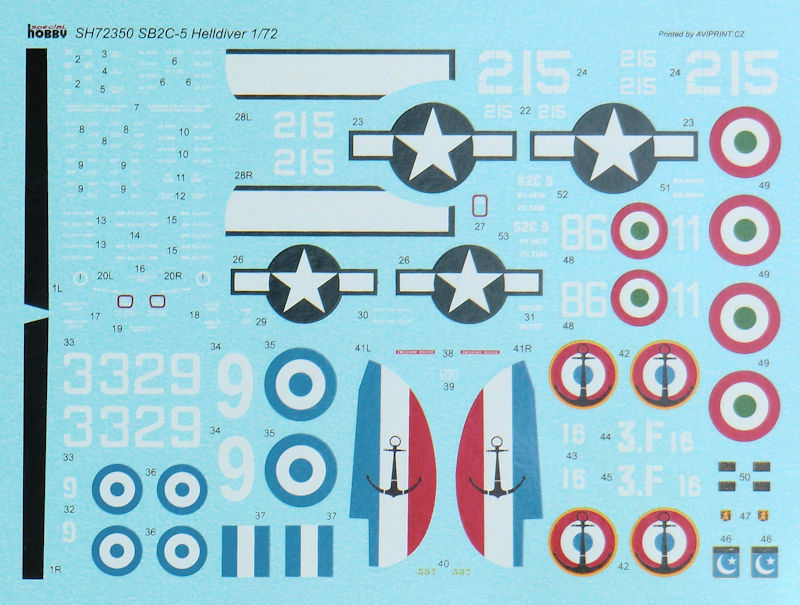 Die beiden Decalbögen sind tadellos gedruckt und wer die Trikolore auf dem Seitenruder lackieren möchte, für den hat man einen separaten Anker gedruckt. Als Farbreferenz nutzt special hobby die Systeme von GRUNZE.