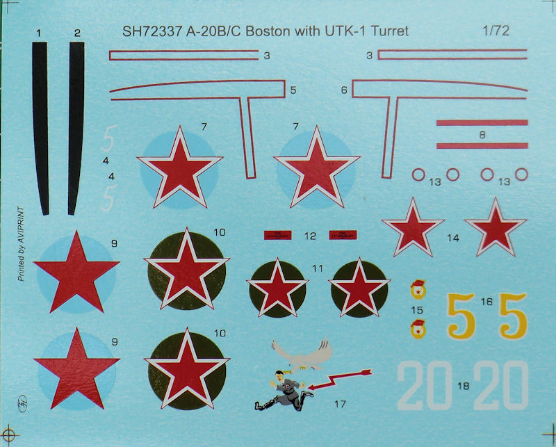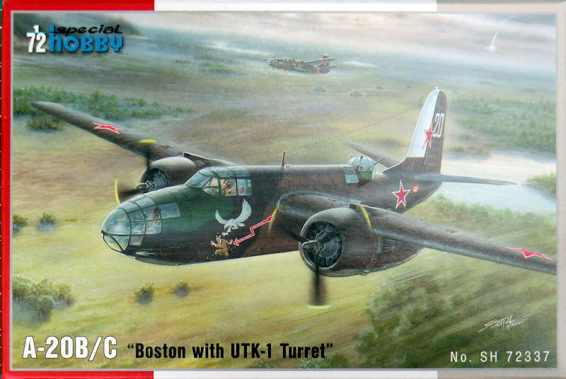 Bausatz: Seit 2010 hat die MPM/special hobby-Gruppe die Douglas A-20 im Maßstab 1/72 in verschiedenen Versionen auf dem Markt. Es war damals einer der ersten Bausätze aus einer Metallform. So gibt es nun eine spezielle sowjetische Version der A-20 mit dem UTK-1 Drehturm. Dazu hat man einige Teile neu entwickelt und dazugelegt.