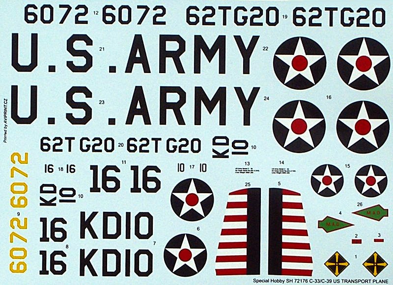 Bausatz: Schon vor sechs Jahren erschien im Hause MPM die Douglas DC-2, die ich auch selbst als Luft Hansa Maschine gebaut hatte. Im Prinzip ist der Bausatz i.O. Nun hat MPM beim Label Special Hobby die Versionen C-33 und C-39 herausgebracht die sich doch deutlich von den normalen DC-2 unterscheiden. Dafür wurden einige Teile neuentwickelt und auf einem Spritzrahmen vereint. Es handelt sich um das Höhenleitwerk der DC-3/C-39, das Seitenleitwerk der C-33 sowie eines der DC-3/C-39, einer neunen Tragflügelunterseite der DC-3/C-39 und ein paar Kleinteile. Somit sind alle Voraussetzungen zum Bau der C-33 und der C-39 vorhanden.