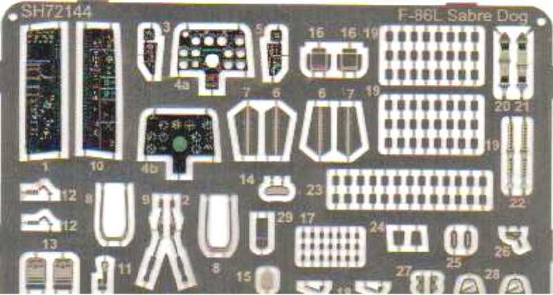 Bausatz: Typisch für Special Hobby folgt dem bereits erschienen F-86L Bausatz eine „special edition". Er enthält die gleichen gut detaillierten, jedoch nicht ganz gratfreien Spritzgussteile, einen Bogen Fotoätzteile (z.T. farbig bedruckt) und die Resinräder. Die Kanzel ist ein Vacuteil – nicht jedermanns Sache.