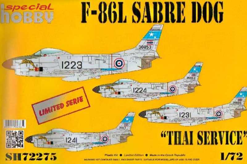 Vorbild: Die F-86 Sabre Dog war der erste Allwetterjäger der Firma North American und basierte auf der F-86A. Das wesentliche Unterscheidungsmerkmal zu den bisherigen F-86 Baureihen war der Rumpfbug mit Radom und die Bewaffnung mit Raketen. Die Gesamtzahl der bestellten Maschinen erreichte die stolze Zahl 2504. 1955 waren 20 Geschwader der USAF mit diesem Typ ausgerüstet. Ab 1958 wurde die F-86D auch exportiert. Für die NATO - Verbündeten wurde die Version F-86K mit vier Kanonen entwickelt. Die F-86L wurde in der Ausrüstung verändert und erhielt eine Tragfläche mit größerer Spannweite. Sie flogen nur in den USA – 17 wurden später an Thailand abgegeben.