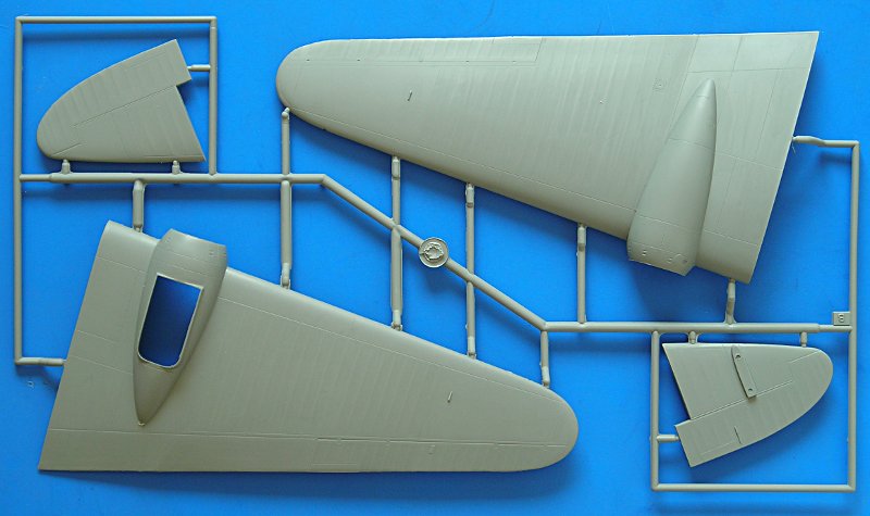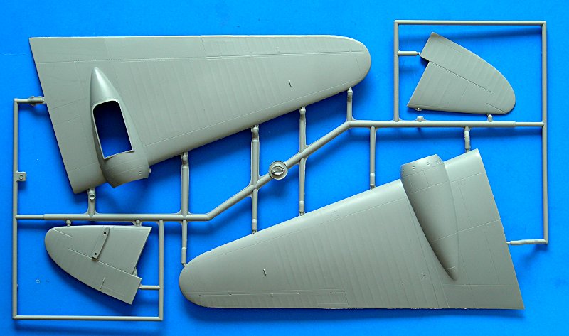 Die Teile für einen der Flügel in meinem Bausatz besitzen eine etwas raue Oberfläche (fühlt sich etwa wie feines Sandpapier an). Kein großes Problem, aber es deutet schon in eine gewisse Richtung. Dieser Bausatz ist ein Kleinserienprodukt und erfordert in allen Phasen des Baus hohe Aufmerksamkeit und auch viele Probemontagen und Anpassungen der Teile. Schließlich wird man jedoch mit einem außergewöhnlichen Modell belohnt, zu dem es Alternativ nur einen extrem teuren Resinkit gibt! Die meisten anderen Spritzlinge sind jedoch ansprechend glatt (einschließlich des anderen Flügels und der Rumpfhälften)