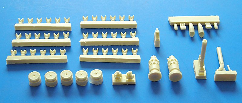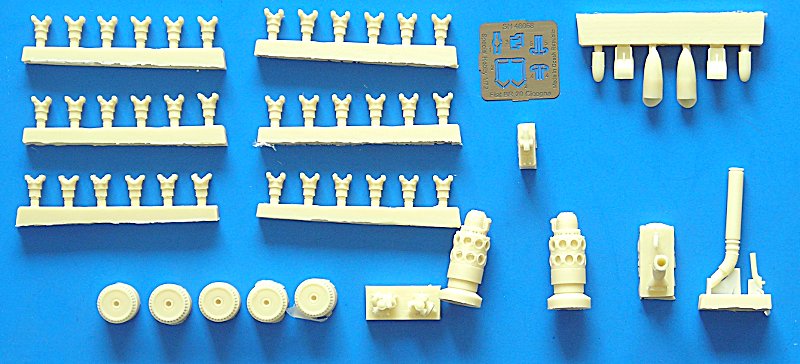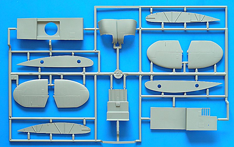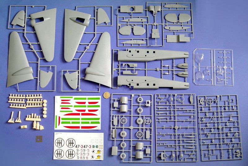 Genug der Vorrede, was gibt es im Bausatz: Beim Öffnen des großen, stabilen Stülpkartons fällt einem zunächst die vergleichsweise große Anzahl von Resinteilen auf. Diese sind von sehr guter Qualität und dienen hauptsächlich der detaillierten Darstellung der Motoren. Insgesamt bleibt Special Hobby der eigenen Philosophie treu, sich hauptsächlich auf die gute Darstellung des Äußeren des Modells zu konzentrieren und die (Super-)Detaillierung dem Modellbauer bzw. Zubehörhandel zu überlassen.