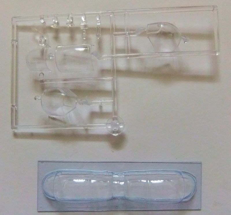 Das Cockpit ist ausreichend eingerichtet, verfügt über eine große Anzahl von Schaltkästen an den inneren Rumpfseiten und berücksichtigt das im hinteren Abteil zwei Mann gesessen haben. Das bei diesem Bausatz alle Details aus normalen Kunststoff bestehen kann man getrost verschmerzen, denn die Teile sind exakt und sauber gefertigt. Allerdings hätten die sonst üblichen Gurte aus Messingätzteilen dem Gesamtpaket gut getan. Die Kabinenteile sind klar und schlierenfrei. Allerdings gibt es die vordere Kabinenhaube nur geschlossen. Die hintere Sektion liegt auch als Vacubauteil bei. Warum nicht auch für den Piloten solch eine Kanzel beigelegt wurde, wissen nur die Götter.