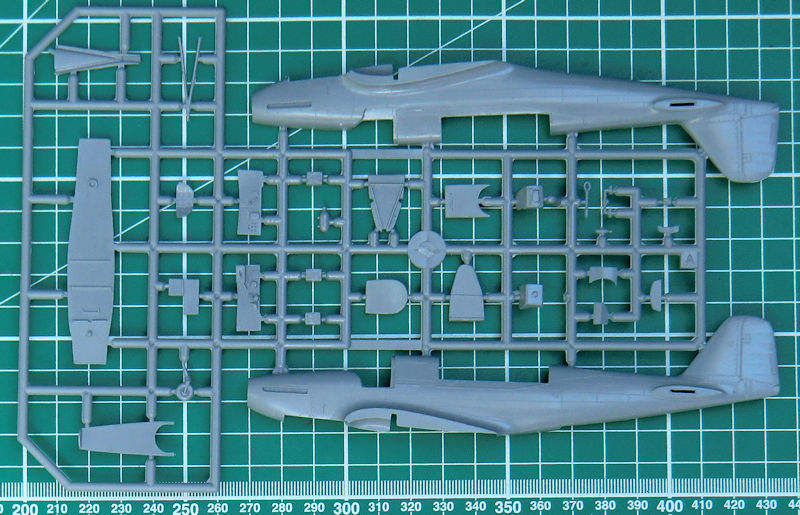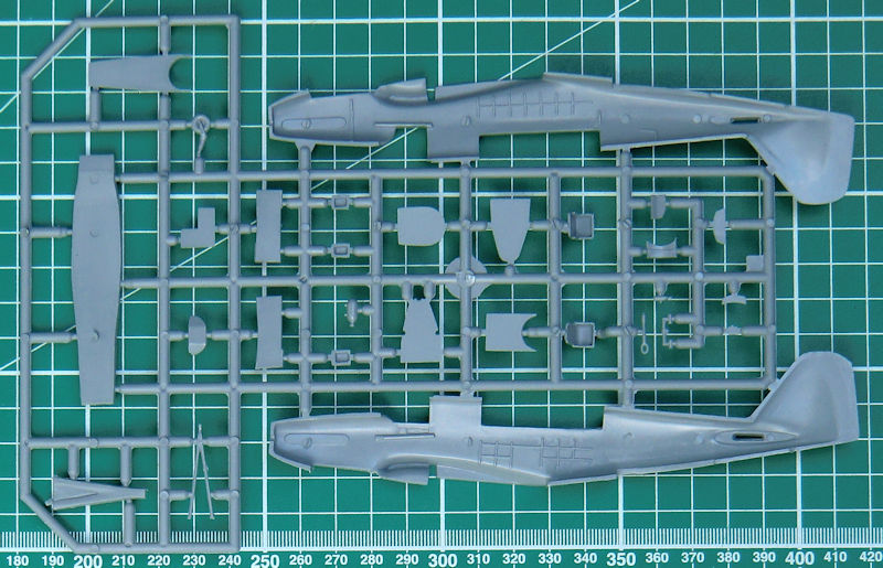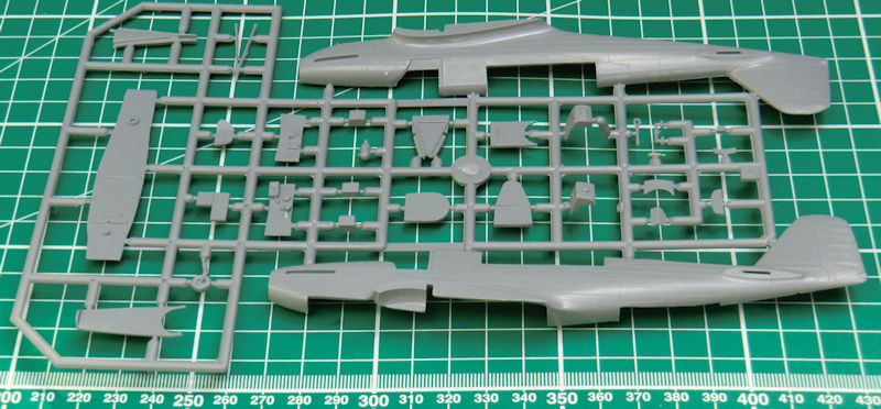 Die hellgrauen Spritzgussteile besitzen realistische Strukturen und auch die Kleinteile sind gratfrei. Das Cockpitinnere entsteht aus einem Mix aus Spritzguss- und Fotoätzteilen. Dabei fallen insbesondere die feinen fotogeätzten Sitzgurte auf. Die Instrumente müssen entweder selbst bemalt oder mittels Decal dargestellt werden. Alle nötigen feinen Strukturen erleichtern beides.