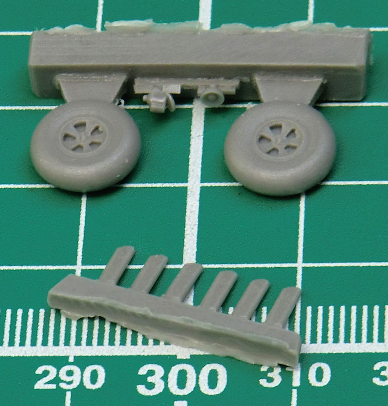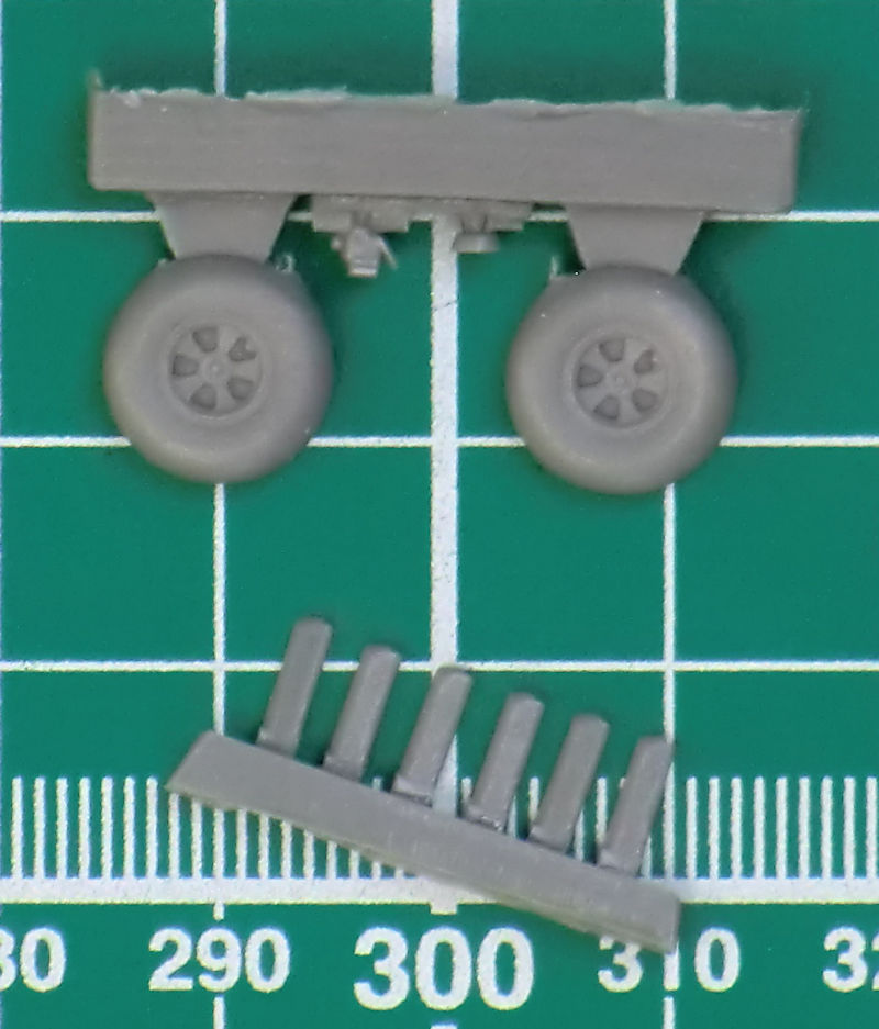 Sehr gut gemacht sind die sehr tiefen Fahrwerksschächte. Die Ausschussöffnungen der MGs sind durchbrochen. Diverse kleine Fotoätzteile werden noch auf der Unterseite des Modells verbaut. Für das Fahrwerk gibt es geätzte Scheren und detaillierte Räder aus Resin. Eine gute Idee sind die Positionsleuchten aus Klarsichtmaterial. Der Fanghaken liegt einzeln bei. Für die Nachtjägerversion hat special hobby auch die passenden geätzten Antennen gefertigt.