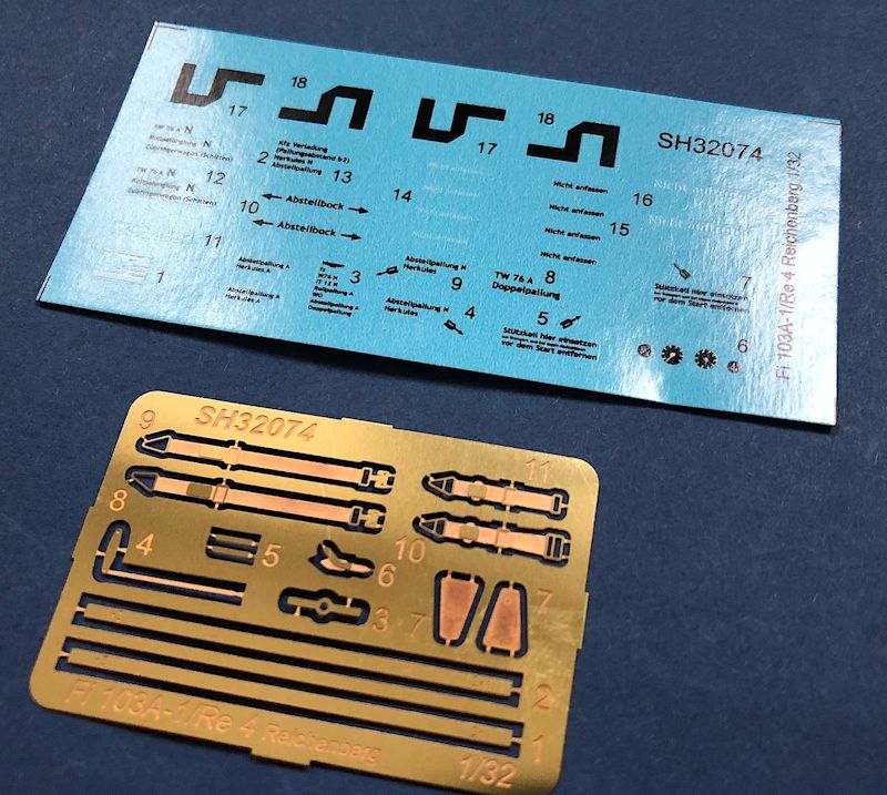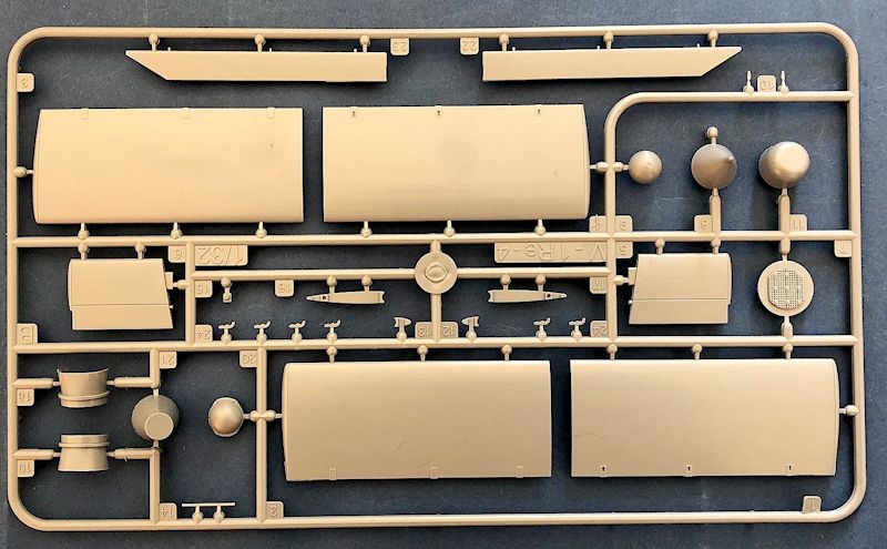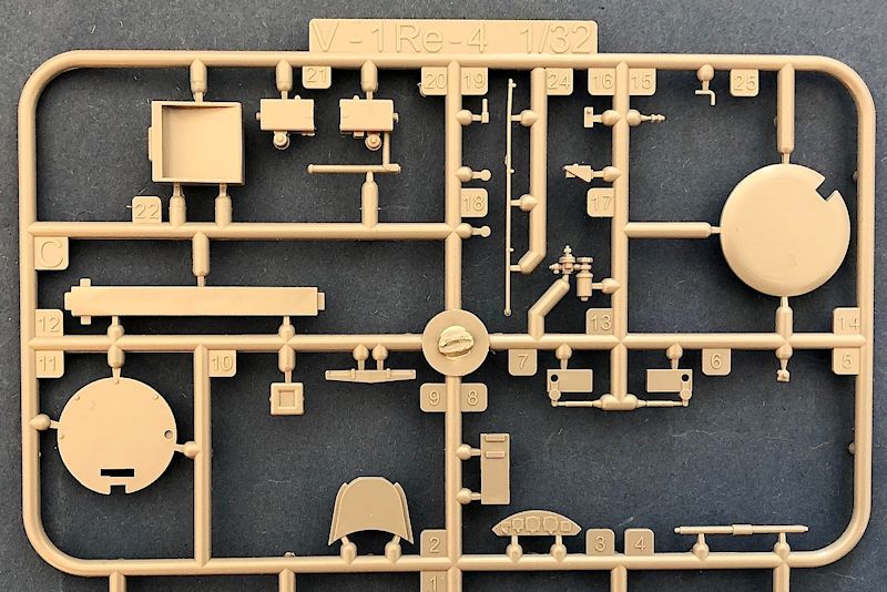 Bei den Teilen der Re-4 finde ich alles, was man benötigt, um ein überzeugendes Modell zu bauen. Zwei Dinge sind mir dennoch aufgefallen: Zum einen fehlt die Zündkerze oben auf dem Triebwerk, mit der der Pilot gezielt starten konnte und zum anderen die Neigungswinkelstreifen als Abziehbilder, die seitlich an der Pilotenhaube angebracht waren. Beides kann aber problemlos erstellt werden.