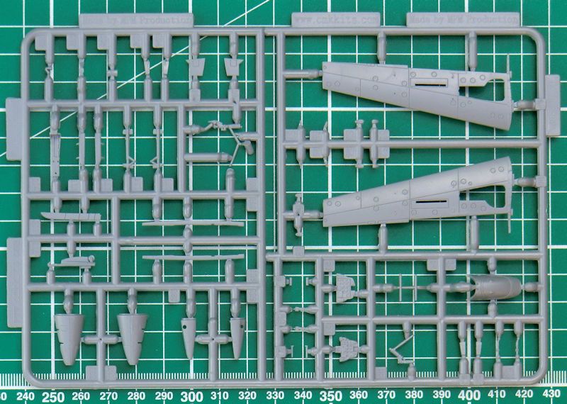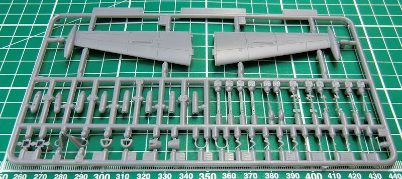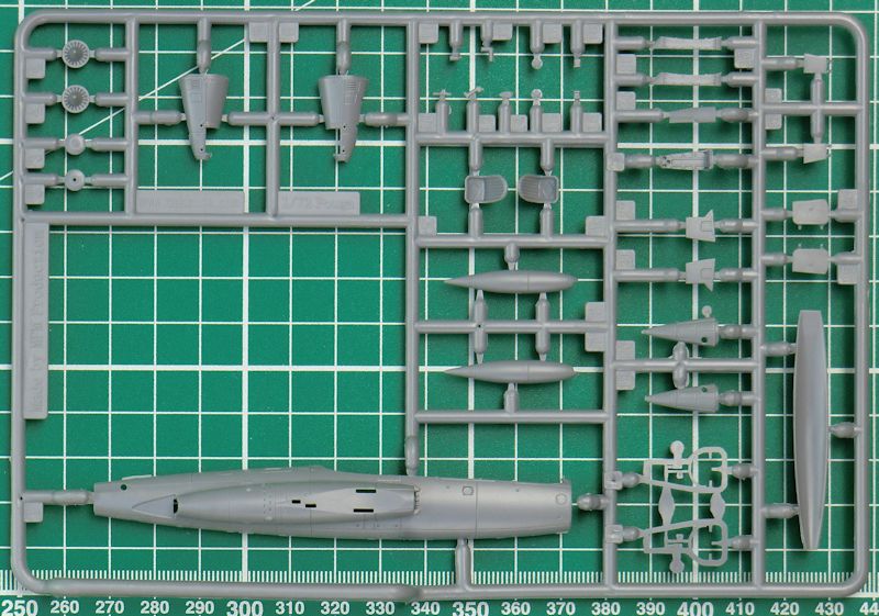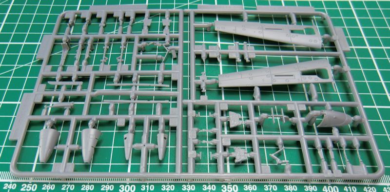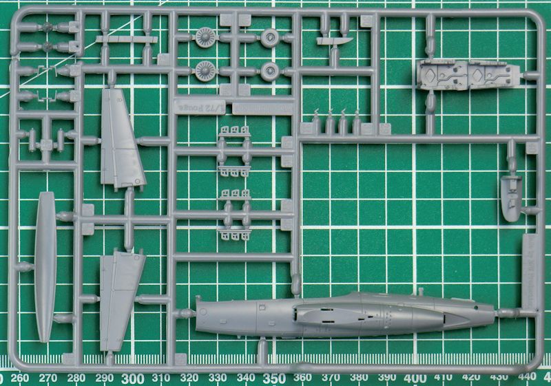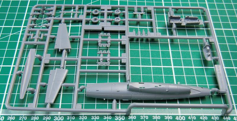 Im Rumpfbug muss ein Gegengewicht ergänzt werden. Das Schmetterlingsleitwerk hat scharfe Hinterkanten. Das Gleiche findet man an den Tragflächen. Die Fahrwerksschächte sind gut detailliert und werden einzeln eingeklebt.