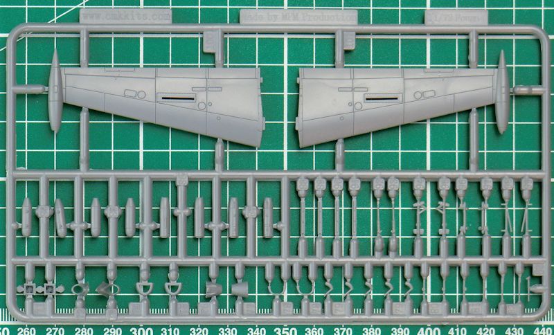 Das Fahrwerk und deren Klappen sind gut detailliert. Schön sind die Klarsichtteile für die Cockpitverglasung. Diese können auch offen angeklebt werden. Bei CMK gibt es jeweils Räder und Sitze aus Resin.