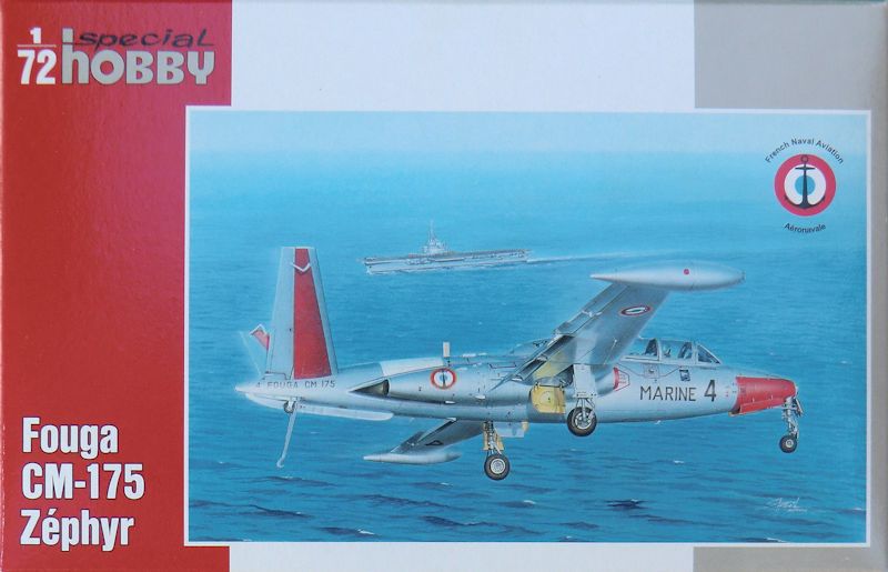 Bausatz: Bei special hobby plant man eine ganze Reihe der Fouga Magister in 1/72. So ist natürlich die CM. 175 Zéphyr dabei. Diese gibt es erstmals in Spritzguss. In der attraktiven aber unpraktischen Schüttbox befinden sich gut verpackt vier hellgraue Spritzlinge mit 144 Einzelteilen, einen klaren Spritzgussrahmen mit 17 Teilen, ein Decalbogen und die typische mehrfarbige Bauanleitung. Ein paar Teile sind für die Magister bestimmt und wandern in die Restekiste. Die Short-Run-Teile sind gut gemacht. Leider sind die Angüsse bei den Kleinteilen sehr dick.