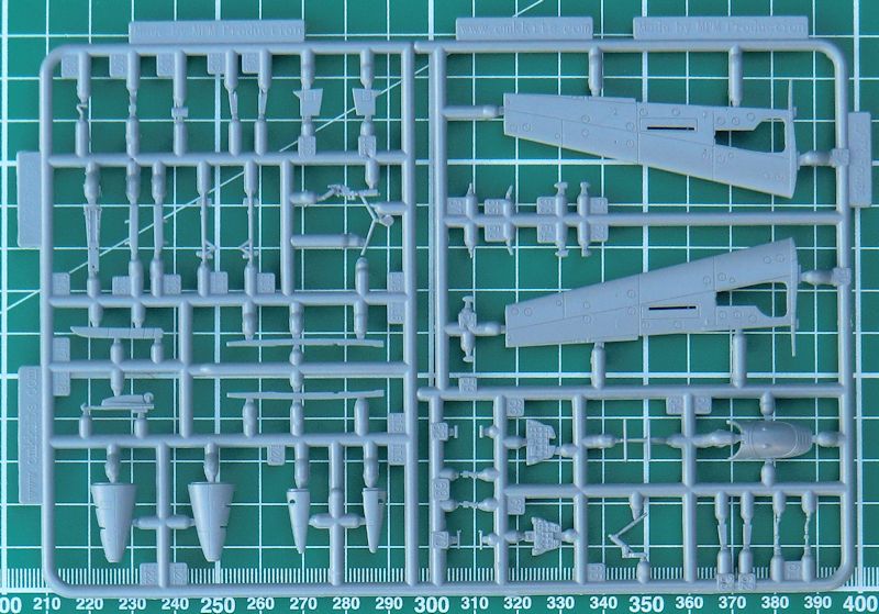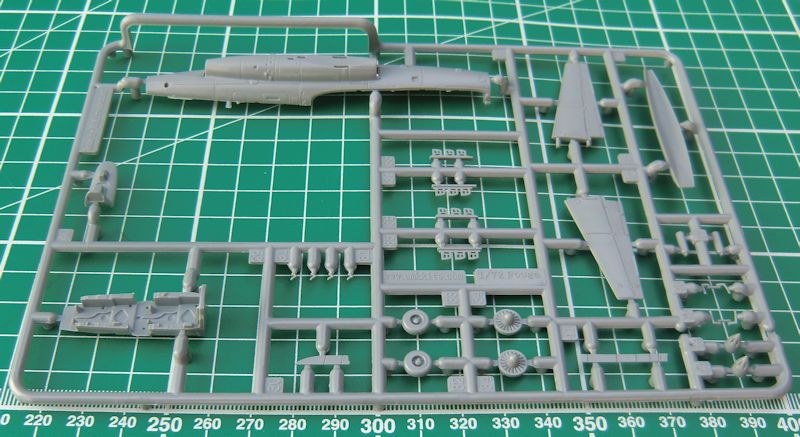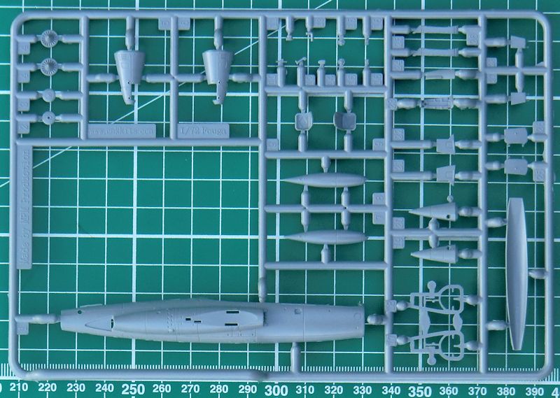 In der attraktiven aber unpraktischen Schüttbox befinden sich gut verpackt vier graue Spritzlinge mit 117 Einzelteilen, einen klaren Rahmen mit 17 Teilen, fünf Resinteile, ein Decalbogen und die sehr gute gestaltete mehrfarbige Bau- und Bemalungsanleitung. Die Teile sind zum Teil schon aus dem Bausatz der CM. 175 bekannt.
