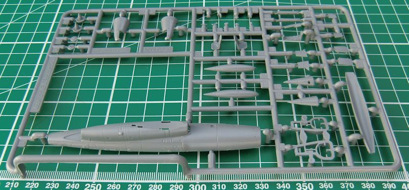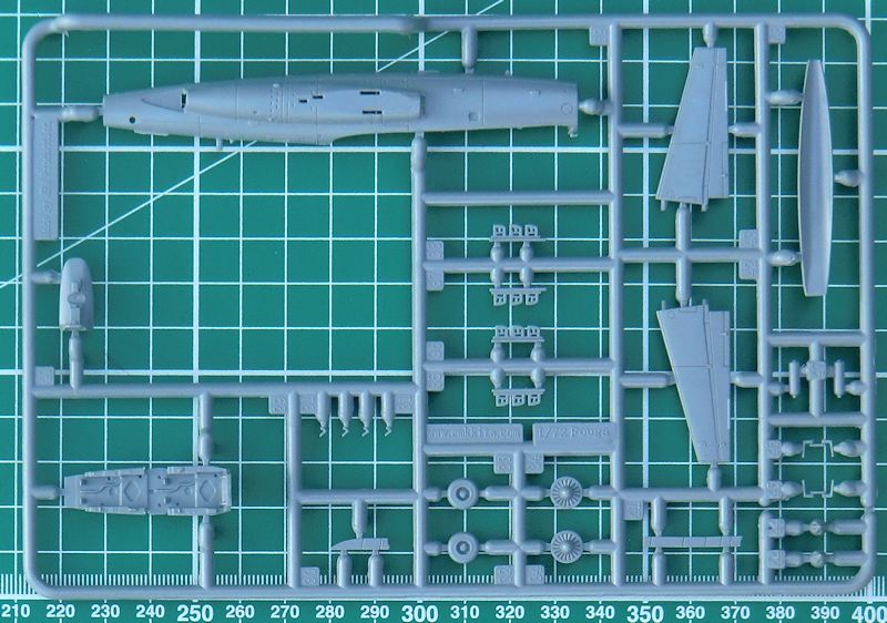 Im Rumpfbug muss ein Gegengewicht ergänzt werden. Sehr schön ist auch das Innere der Lufteinläufe. Dort hat man ein paar Teile der Triebwerke nachgebildet. Das Schmetterlingsleitwerk hat scharfe Hinterkanten. Diese findet man ebenfalls an den Tragflächen. An deren Enden verbaut man kleine klare Positionsleuchten. Die Fahrwerksschächte sind gut detailliert und werden einzeln eingeklebt. Auch beim Fahrwerk selbst hat special hobby einen guten Job gemacht.