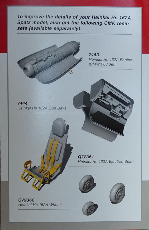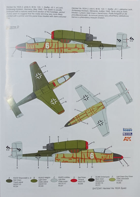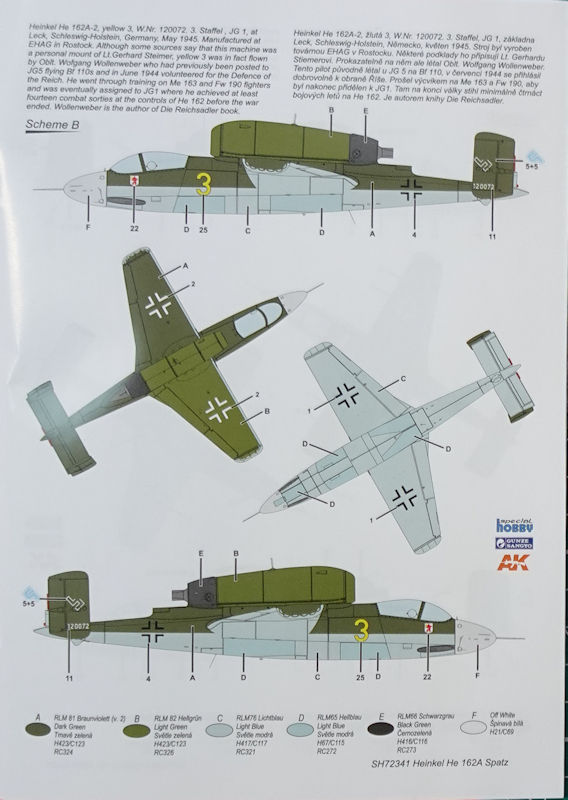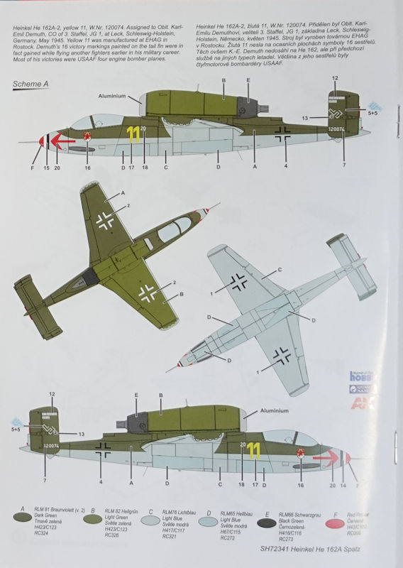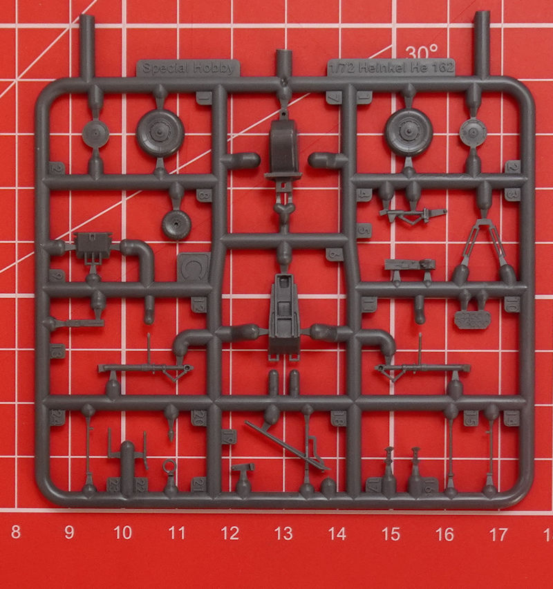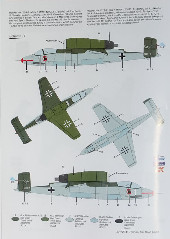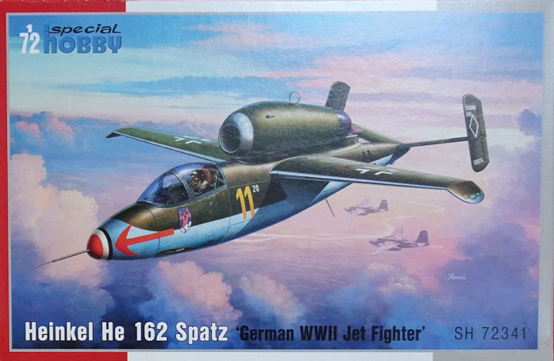 Bausatz: In 1/72 gab es Anfang der 1990er Jahre einen modernen Bausatz der He 162A von Dragon mit all den bekannten Problemen des 48er Kits. Tamiya hatte die Chance Anfang der 2000er nicht genutzt und aus dem brauchbaren 1/48er Kit keinen 72er herausgebracht. So dauert es fast 30 Jahre bis in Tschechien bei special hobby ein neuer zeitgemäßen Spritzgussbausatz der kleinen Heinkel erschien. Auf der diesjährigen Spielwarenmesse konnte man erstmals die Teile und ein daraus gebaute Modell bewundern.