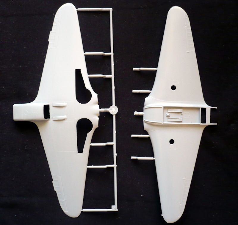 Die Oberflächen sind fein detailliert und weisen versenkte Blechstöße auf. Die versenkten Nietenköpfe wirken ebenfalls sehr authentisch. Die Cockpithaube lässt sich im geschlossenen oder geöffneten Zustand darstellen. Ein Blick in den Arbeitsbereich des Piloten zeigt auch ein detailliertes Cockpit mit Instrumentenbrett, Gurten, Seitenkonsolen und Fußpedalen. Das Fahrwerk und die Schächte sind ebenfalls sehr gut detailliert.