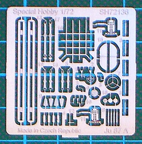 Das Cockpit wird aus einem Mix von Plastik-, Metall- und Resinteilen erstellt. Letztere sind insbesondere für die Bewaffnung bzw. die Magazinhalterungen gedacht. Die Sturzflugbremsen bestehen aus Fotoätzteilen. Dem Bausatz liegt eine schöne Spritzgusskanzel bei. Wer diese offen gestalten möchte, der muss dann allerdings die Säge ansetzen. Die Bauanleitung ist sehr übersichtlich und enthält auch ein paar Seitenansichten der Maschine. Auch der Decalbogen ist gut gemacht und es gibt getrennte Markierungen für das Seitenleitwerk. Versatz gibt es nicht. Immerhin sind auch ein paar Wartungshinweise vorhanden.