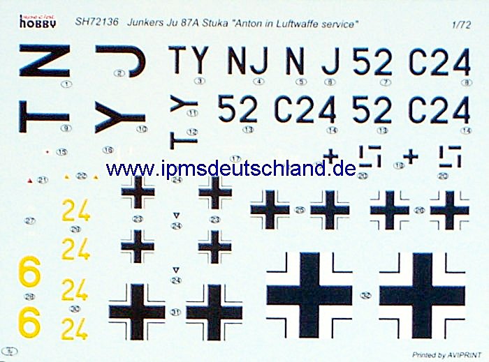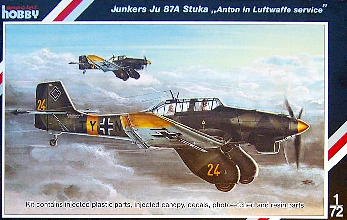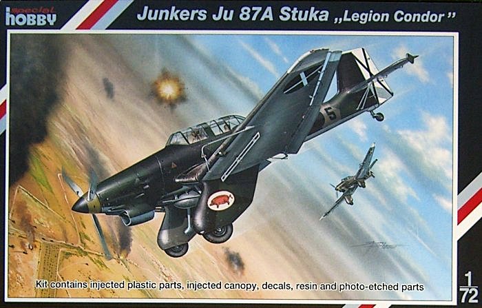 Bausatz: Im Sommer 2006 kam der erste Bausatz der neuen Junkers Ju 87A von Special Hobby heraus. Es war die Decalvariante "Legion Condor". Obwohl das Bausatzcover das Vorhandensein von Resinteilen suggerierte, waren sie in der Bauanleitung und im Bausatz selbst nicht enthalten. Das ist der erste Unterschied zur neuen Luftwaffenversion.