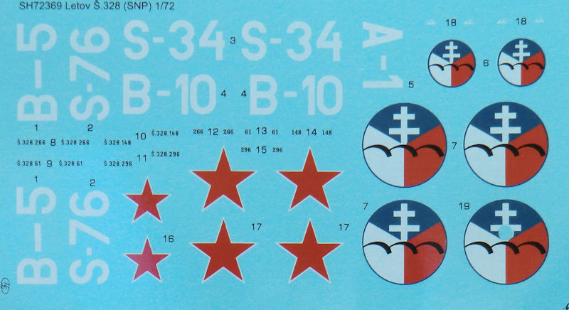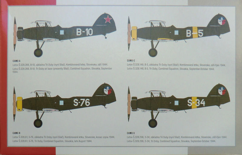 Bausatz: 2015 erschien bei special hobby der erste Bausatz der Letov S. 328 im Maßstab 1/72. Seit einiger Zeit gibt es diesen gelungenen Bausatz auch in den Markierungen des slowakischen Nationalaufstandes. In der attraktiven aber unpraktischen Schüttbox befinden sich gut verpackt fünf hellgraue Spritzgussrahmen mit 95 Einzelteilen, ein klarer Spritzgussrahmen mit acht Teilen, zwei Decalbögen und die mehrfarbige Bau- sowie Bemalungsanleitung.