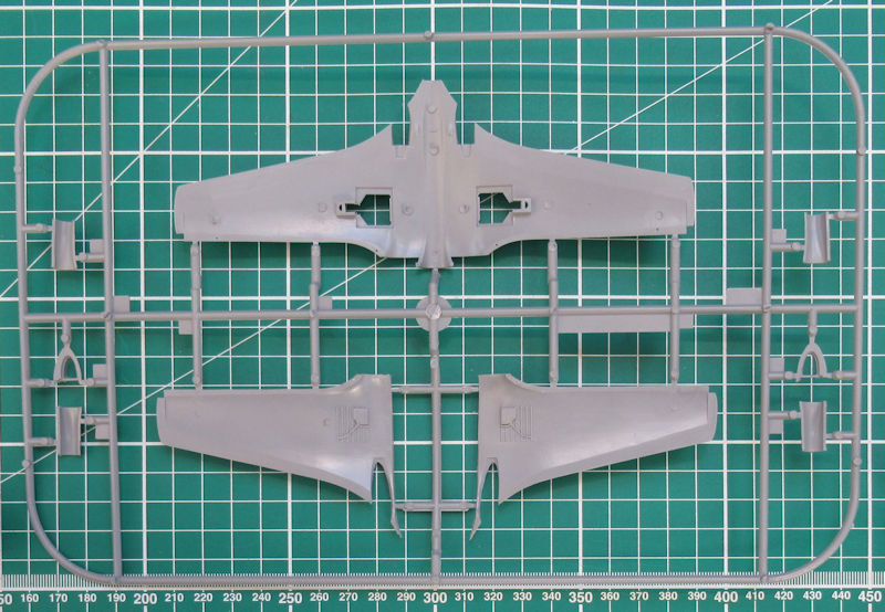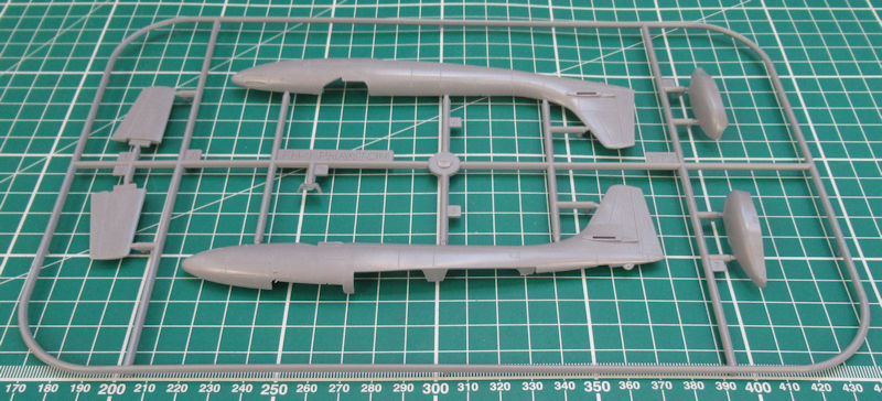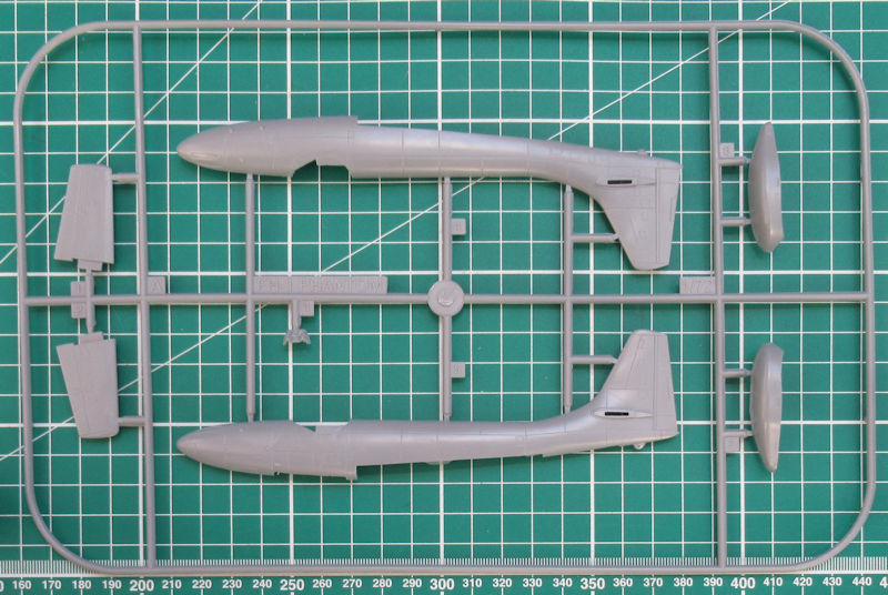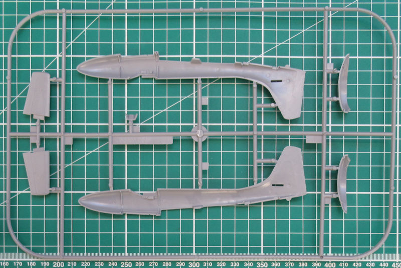 Die Fahrwerksteile sind sehr filigran. So müssen die Scheren sind aus zwei Teilen zusammenzubauen. Bei den dazugehörenden Klappen hat man auf den Innenseiten schöne Strukturen nachgebildet. So muss man die Klappen auch mittels feinen Haltern befestigen. Als Hilfestellung gibt es noch eine Frontansicht. Die Hauptfahrwerksräder sind etwas eckig und haben technologisch bedingt kein Profil. Den Fanghaken gibt es einzeln. Die Höhenruder haben scharfe Hinterkanten. Für die Positionsleuchten gibt es Klarsichtteile. Die Schiebehaube kann in einer geöffneten Position angeklebt werden.