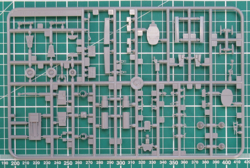 Bausatz: Die McDonnell FH-1 Phantom "US Navy" ist die zweite Auflage dieses neuen special hobby-Bausatzes im Maßstab 1/72. So sind die Bauteile identisch mit dem ersten Kit. In einem attraktiven praktischen Stülpkarton befinden sich sehr gut verpackt drei hellgraue Spritzgussrahmen mit 79 Teilen, einem Klarsichtrahmen mit sieben Teilen, ein Decalbogen, ein Fotoätzteilbogen und die mehrfarbige Bau- und Bemalungsanleitung.