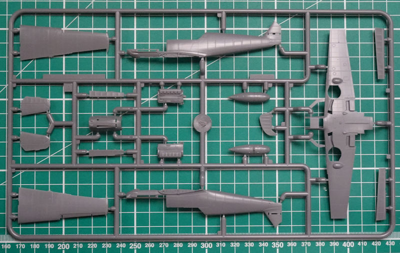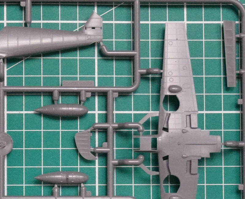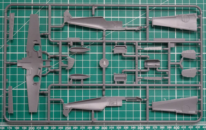 Drei große Teile bilden die Tragfläche der E-Variante. Eine 109T soll ja auch noch erscheinen. Klappen und Querruder werden einzeln angeklebt. Die Vorflügel klebt man einzeln an und können natürlich auch in leicht ausgefahrener Position fixiert werden. Scharfe Hinterkanten sind hier auch vorhanden. Die Flächenkühler haben offene Klappen. In der einzelnen Cockpithaube können zwei verschiedene Kopfpanzer eingebaut werden.