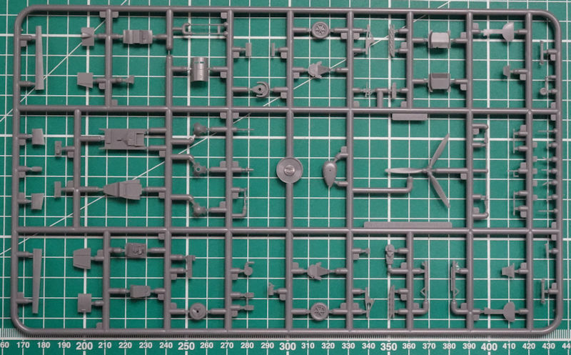 Hier liefert special hobby einen ungewöhnlich großen praktischen Stülpkarton. Darin befinden sich sehr gut verpackt zwei hellgraue Spritzlinge mit 89 Teilen, ein Klarsichtrahmen mit sieben Teilen, ein Decalbogen und die mehrfarbige Bau- und Bemalungsanleitung. Die Abspritzung der Bauteile ist sehr gut. Es gibt sehr feine Details. So etwas habe ich noch nicht in dieser Art gesehen. Feinste Nieten und versenkte Strukturen überziehen passend das ganze Äußere der kleinen 109E. Ein paar Teile sind für andere Varianten und wandern in die Restekiste.
