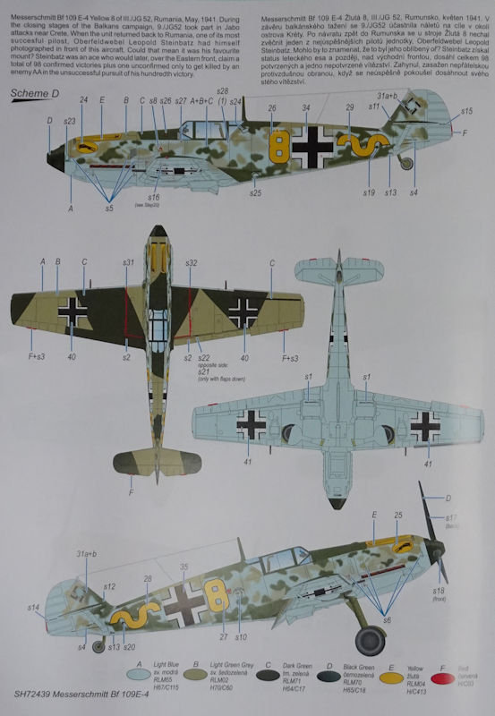 Bei den Farbangabe bezieht sich special hobby sich auf die GUNZE Systeme. Alternativ gibt man auch passende RLM-Farbtöne an. Der Decalbogen ist tadellos gedruckt. Hier findet man auch die Wartungshinweise in wundervoller Qualität.